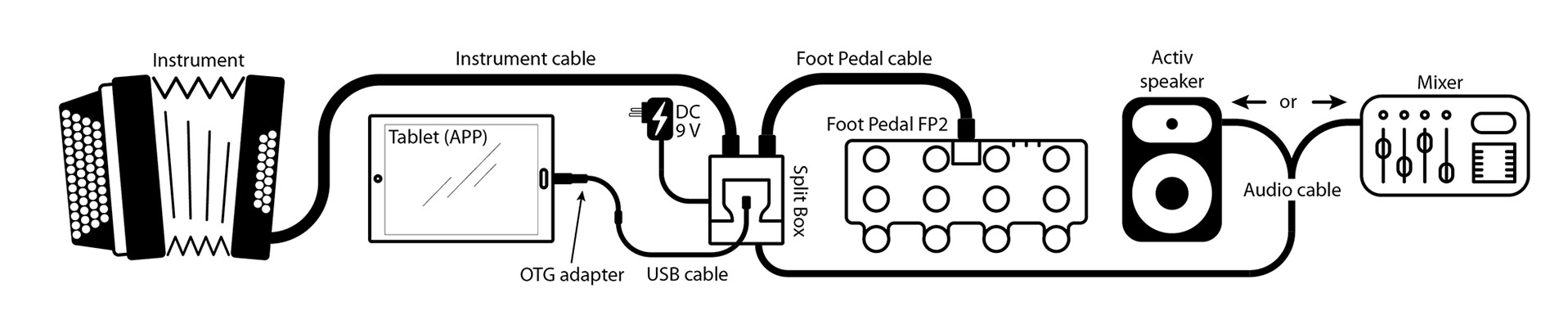 The LIMEX foot pedal FP2 can only be used in conjunction with a LIMEX MIDI system MPRX!
