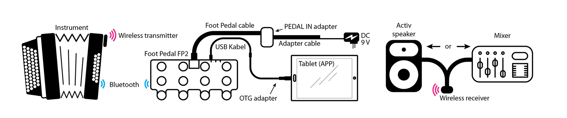 The FP2 foot pedal is the ideal addition to the LIMEX MIDI MPRX system. Combined with the MC12 controller, you get comprehensive and practical control options for optimal music creation - wired or wireless.